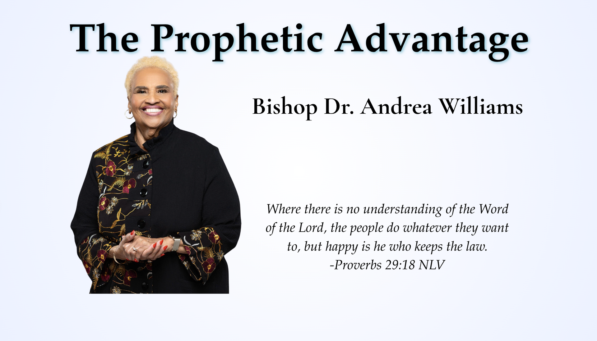 Bishop Andrea is an ordained Apostle and Prophet, and was consecrated to the office of the Bishopric in 2018. As an avid encourager of education, both spiritually and naturally, Bishop Andrea holds a BA in Religious Studies, and a MA & Th.D. in Theology. Bishop Dr. Andrea Williams is a seasoned prophet with a relevant word from the Lord. She travels extensively throughout America and other nations equipping men and women for the purpose for which they are created.